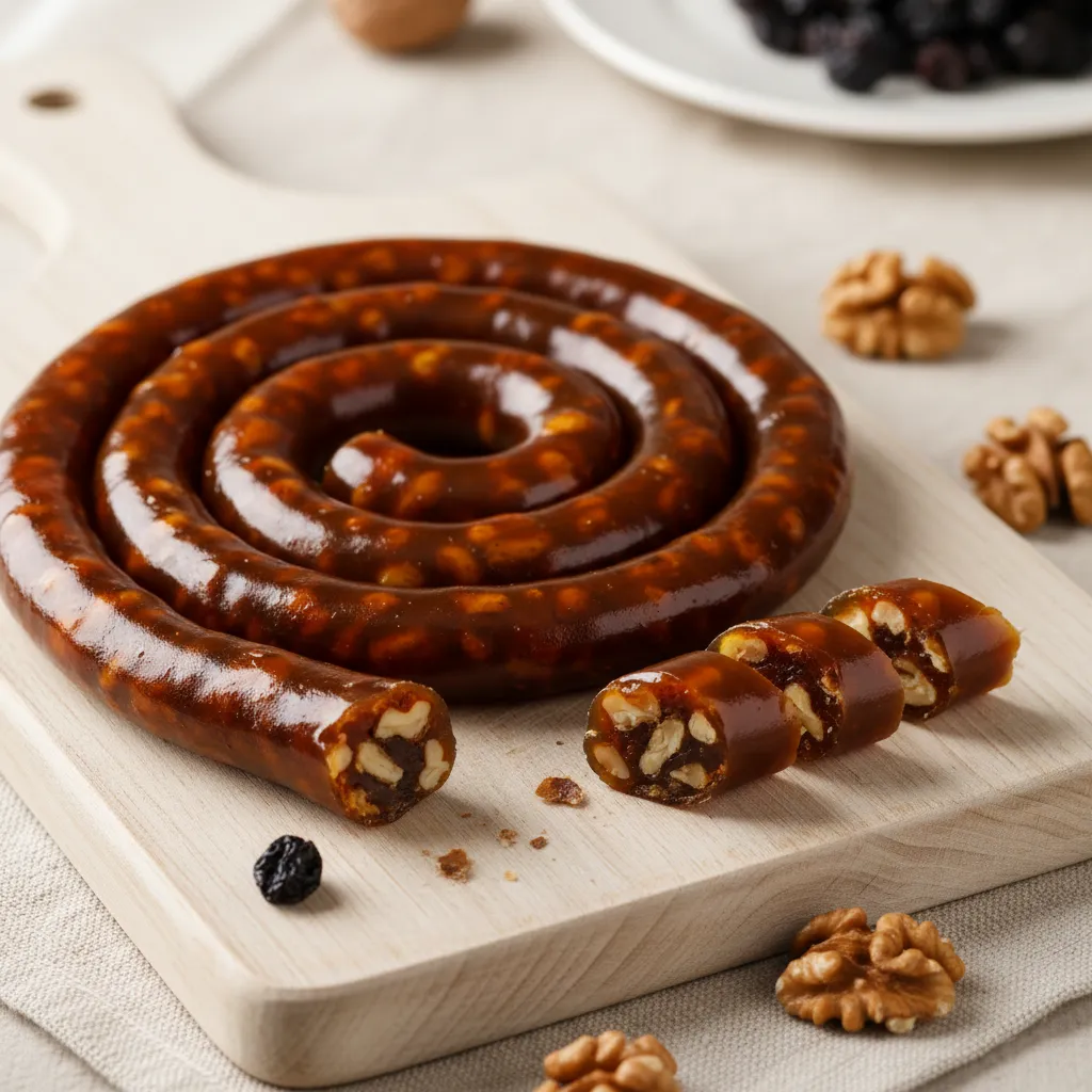 Tokat'ın geleneksel ceviz sucuğu, ceviz içlerinin üzüm pekmezi harcına batırılıp kurutulmasıyla hazırlanır. Doğal ve besleyici bir atıştırmalıktır. Kış aylarının sevilen ikramıdır.